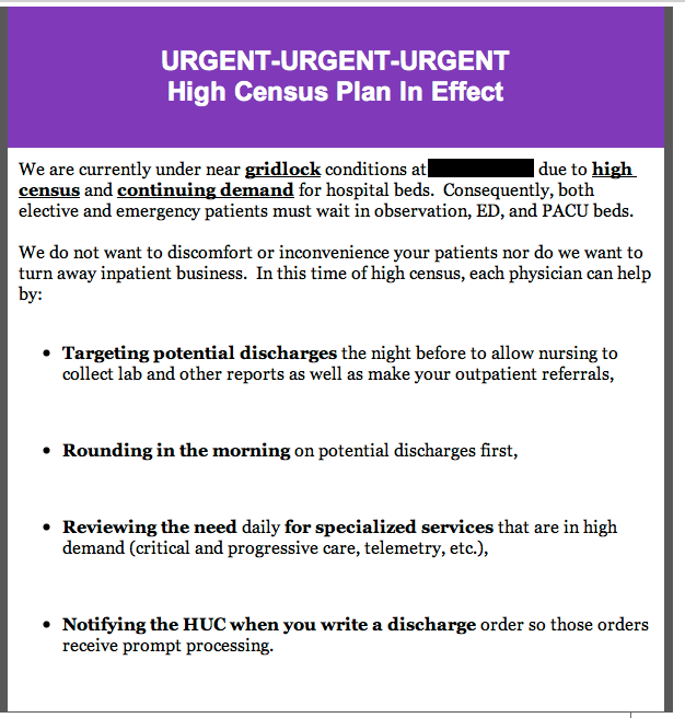 Let’s play “Where’s the constraint?’ Think in terms of the discussion from my prior post ‘the dark side of hospital flow…Part 1’.